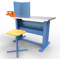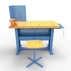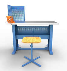 Основание и защитный экран поставляются в синем цвете. Рабочий стол используется учащимися 4-11 классов для сборочных, слесарных, монтажных и иных видов работ.