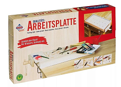 Портативный верстак для ДОУ, за которым смогут работать дети старше 6-ти лет, выполнен из высококачественных материалов. Изделие не вредит экологии и здоровью дошкольников, при этом позволяет приобрести полезные навыки, связанные с моторикой, координацией, пространственным мышлением, речью.
