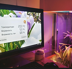 Встроенное ПО позволяет выстроить график температуры и влажности за выбранный интервал времени, распечатать отчет работы лаборатории. Предусмотрены функции произвольного светового дня и выбора цвета подсветки.