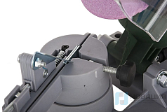 Звенья, которые нужно заточить, помещаются в рабочую область. После нажатия стартовой кнопки приводится в движение абразивный диск (d 100 мм, толщина круга 3.2 мм, скорость 7500 об/мин).