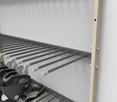 Полимерно-порошковое покрытие готово к воздействию влаги, поэтому в отделениях допускается хранить спортивную обувь. Декоративная боковая панель закрывает элементы крепежа и подходит для брендирования.