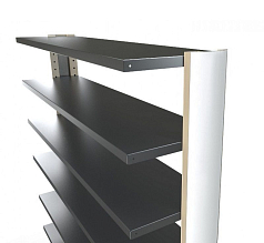 Усиленная односторонняя конструкция оснащается ребрами жесткости. Горизонтальные полки регулируются, расстояние изменяется с шагом в 5 см.