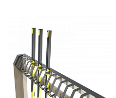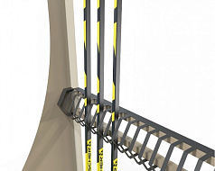 Вешалка с 5 рядами держателей подходит для хранения зимних и роликовых коньков в школе. Пристенная конструкция выполняется из усиленного профиля, покрывается влагостойкой краской.