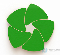 Комплект столов для проекта "ТР" составляется из 4-х модулей. Каждый модуль оборудуется каркасом с серыми металлическими ножками и подпятниками. D ножки составляет 40 мм. Части столешницы изготавливаются из 2-слойного ЛДСП, соединяются в круг. По центру композиции из вырезов образуется окружность.