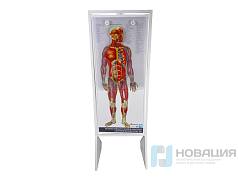 Стенд оснащается светонепроницаемыми фолиями, которые последовательно накладываются друг на друга. На задней поверхности стенда изображен скелет, далее слой за слоем изображаются жизнеобеспечивающие системы тела, которые рассматриваются вместе и по отдельности.