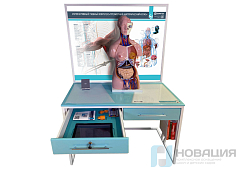 Реалистичная модель туловища оснащается сменной имитацией внутренних органов. На манекен устанавливается метка дополненной реальности.