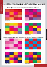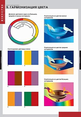 Комплект плакатов "Цветоведение" представлен на 18-ти листах. Может применяться как демонстрационное пособие в школах, художественных студиях и кружках.