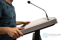 Среди достоинств трибуны - профессиональный микрофон для качественной передачи звука, антивандальный корпус, яркий сенсорный экран, документ-камера для отображения файлов на большом экране, дополнительные внешние разъемы. Модель оснащена местом для размещения документов.