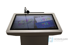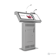 Трибуна предназначена для проведения публичных выступлений. Изготовлена в антивандальном корпусе. Включает интегрированный компьютер, сенсорный дисплей и встроенный микрофон (на гусиной шее).