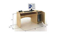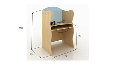 - Стол-полукабинка (ЛДСП (16 мм), цвет бук, размеры (ШхГхВ): 732х570х1100 мм. (Застекленное пространство с улучшенной эргономикой и встроенным цифровым магнитофоном (2 дорожки, 8 кнопок управления)).