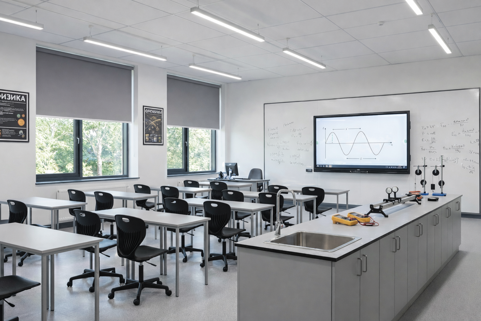 Единый стиль, эргономичная мебель, качественное освещение и системы хранения повышают комфорт и безопасность на уроках. Такие решения делают пространство более гибким для разных форматов занятий и повышают вовлечённость учеников.