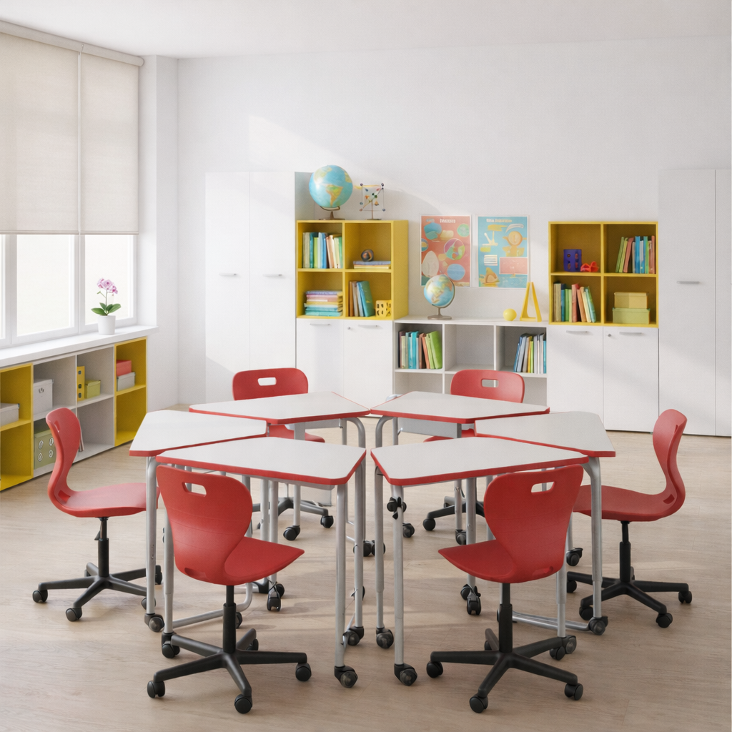 Столы-трансформеры могут комбинироваться в зависимости от задач и целей конкретного урока.