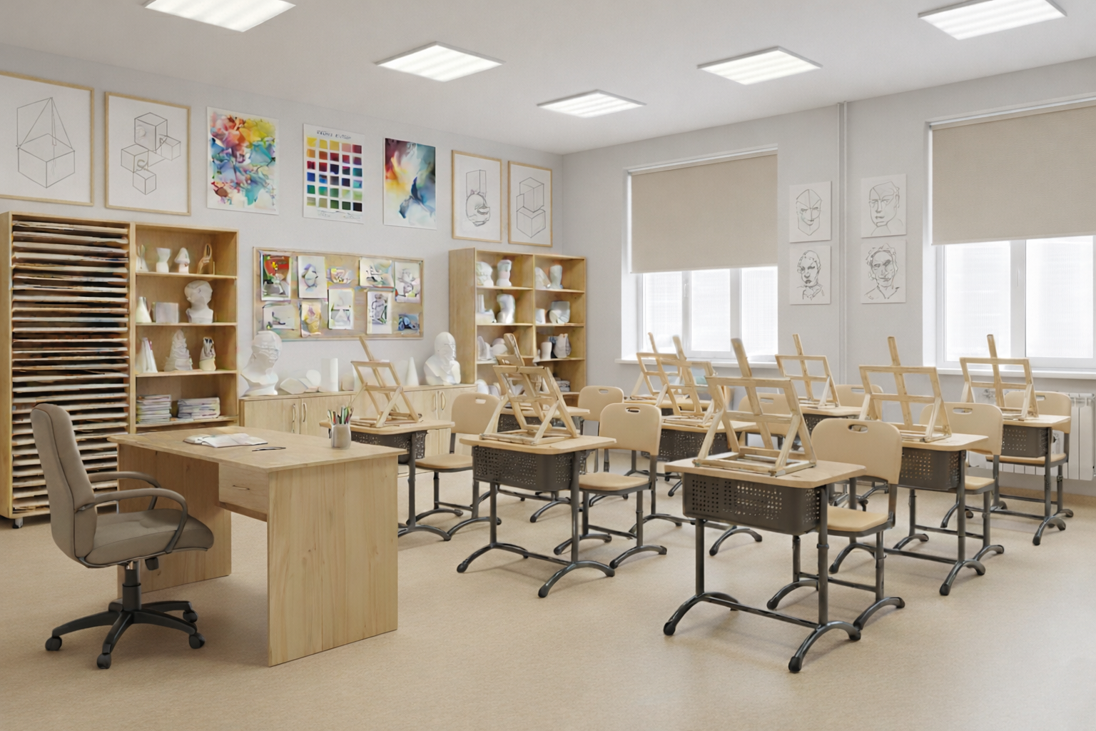 Современные решения для оснащения учебных кабинетов музыки, ИЗО и физики создают функциональную и эстетичную образовательную среду. Продуманная планировка и зонирование учитывают специфику каждого предмета, обеспечивая удобное размещение оборудования, материалов и рабочих мест.