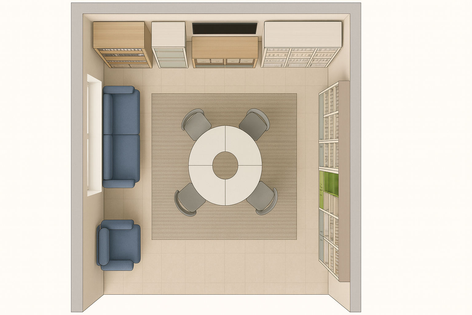 Пространство обеспечивает комфортные условия для самостоятельной работы, чтения и учебной деятельности.